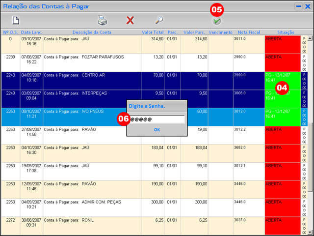 ( 04 ) Ap�s sele��o as contas aparecem selecionadas e o campo Situa��o j� aparece na cor verde, com data e hora |