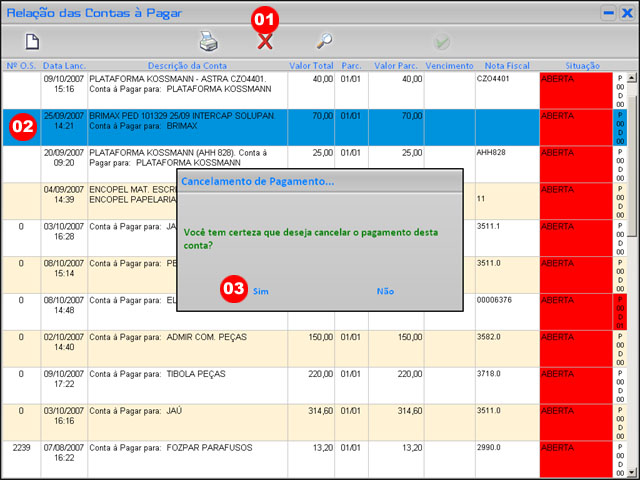 Para excluir uma Conta � Pagar, siga os seguintes passos |