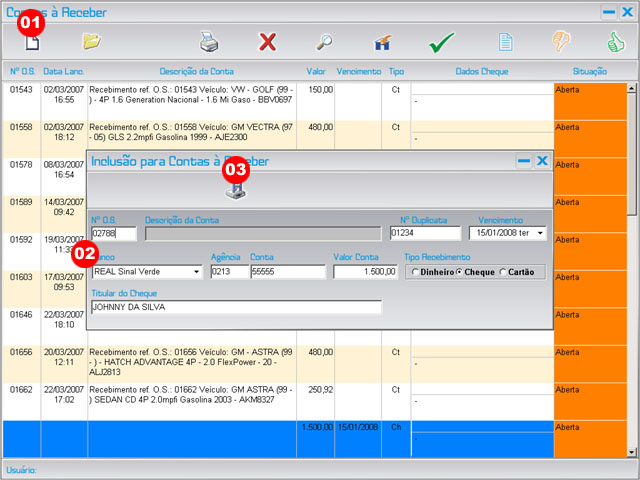 Por padr�o as contas de O.S. j� s�o lan�adas automaticamente em Contas � Receber |