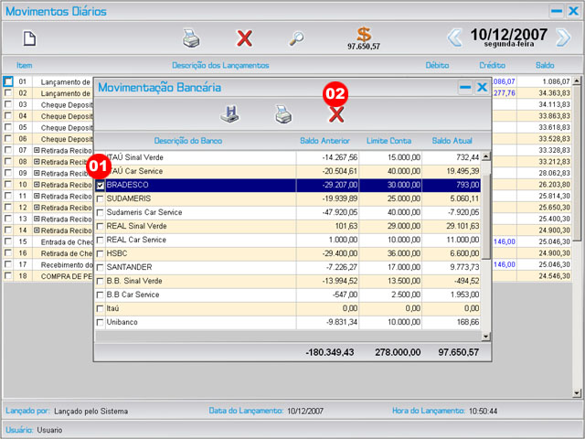 Para excluir um banco da lista de movimento banc�rio, siga os seguintes passos |