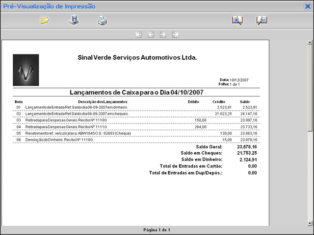 | Administrativo >> Lan�amentos Di�rios >> Pr�-Visualizar Impress�o >> Abrir |