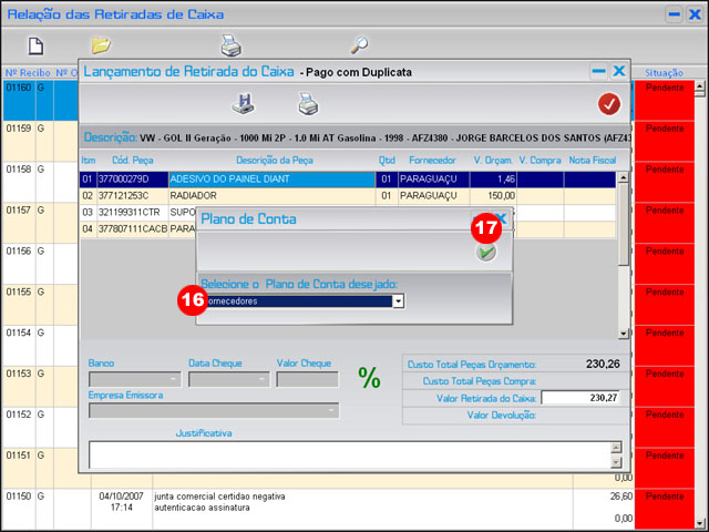 ( 16 ) Selecione o plano de contas e estará salva a retirada |