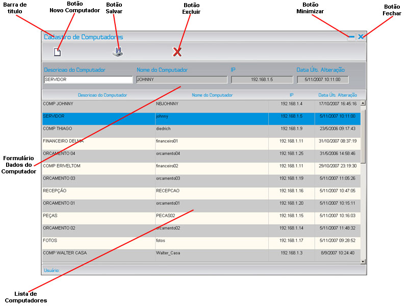 Ap�s ser� aberta a tela de Cadastro de Computadores |