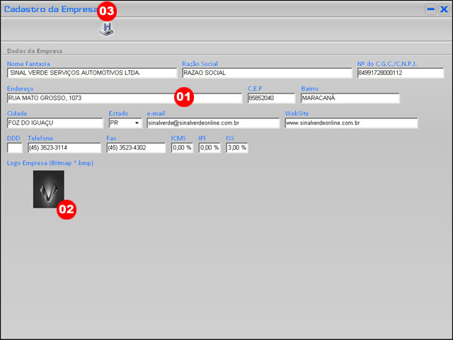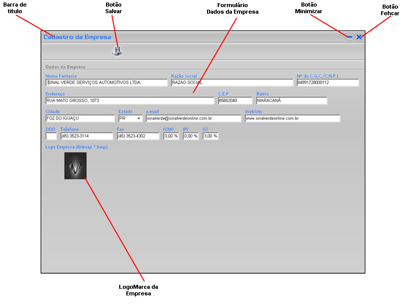 A tela Cadastro da Empresa permite o cadastro da empresa que ir� utilizar o software CarOnline365. |