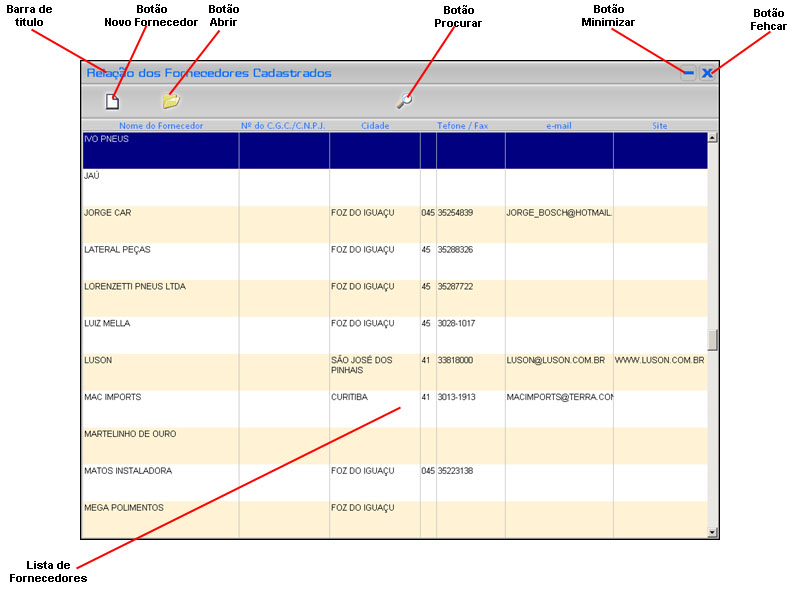 Ap�s ser� aberta a tela de Relação de Fornecedores |