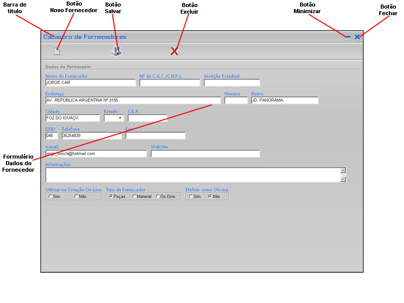 Para Cadastrar, Alterar ou Excluir o cadastro de um fornecedor, siga os seguintes passos. |