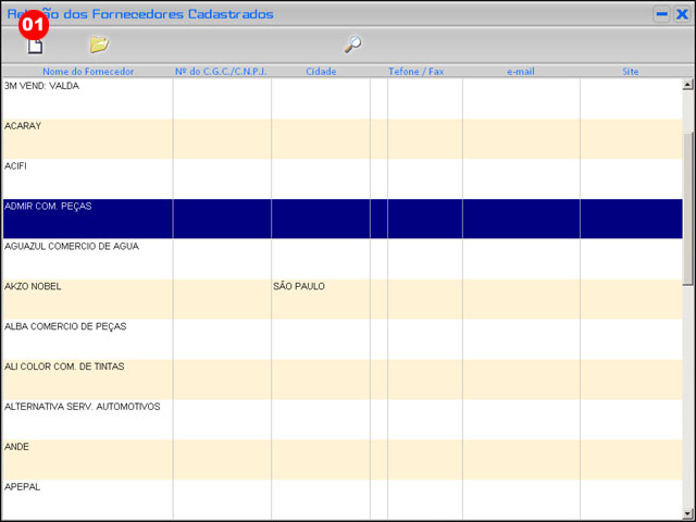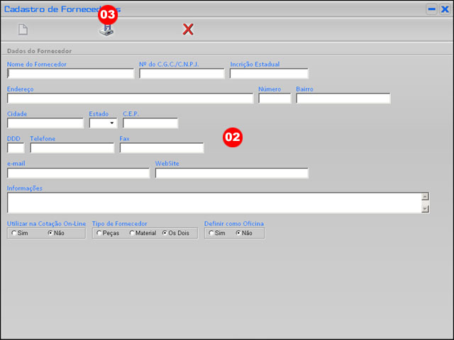 Após será aberta a tela de Cadastro de Fornecedores |