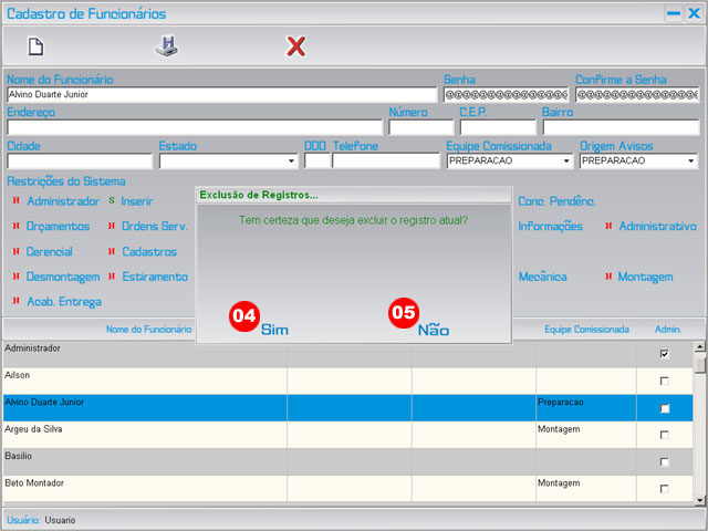 Para excluir o cadastro de um funcion�rio, siga os seguintes passos: |