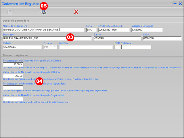 Para alterar o cadastro de uma seguradora, siga os seguintes passos: |