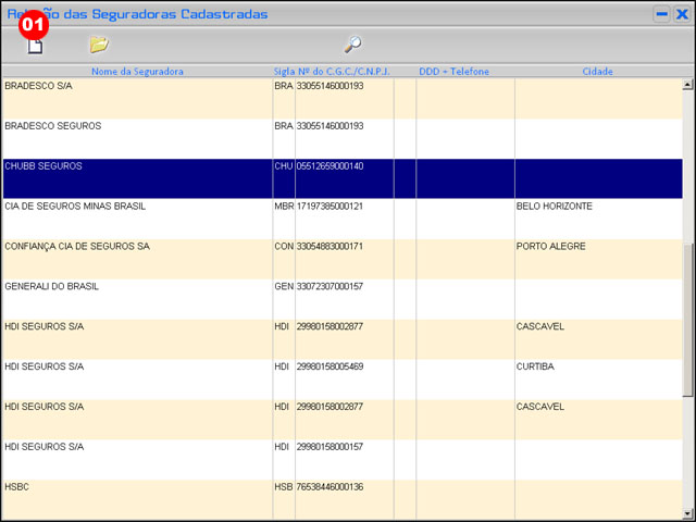 Após será aberta a tela de Cadastro de Seguradoras |