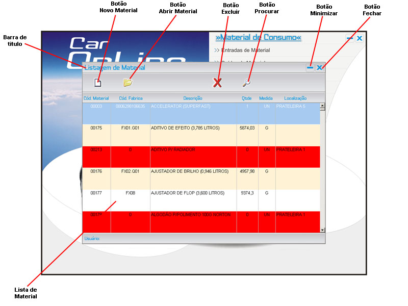 Para Procurar, Cadastrar, Alterar ou Excluir o cadastro de Materiais, siga os seguintes passos. |