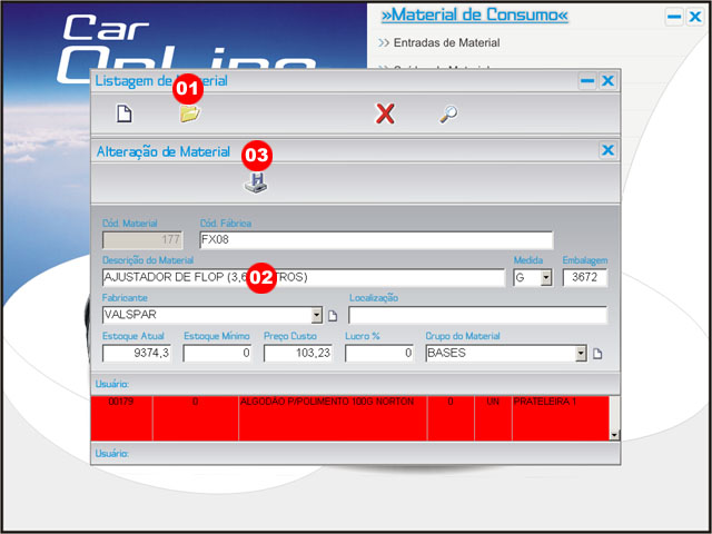 Para alterar o cadastro de um material, siga os seguintes passos. |
