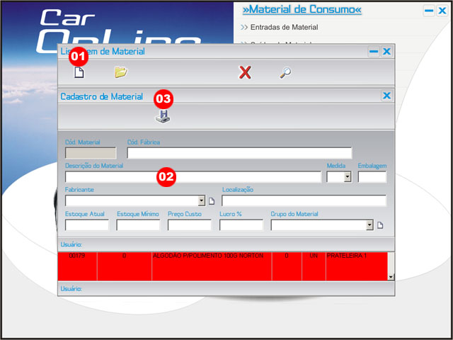 Para Cadastrar um novo material, siga os seguintes passos. |
