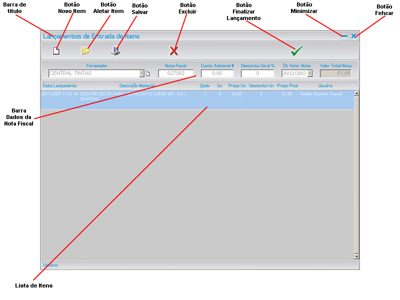 Após será aberta a tela Lançamentos de Entradas de Itens |